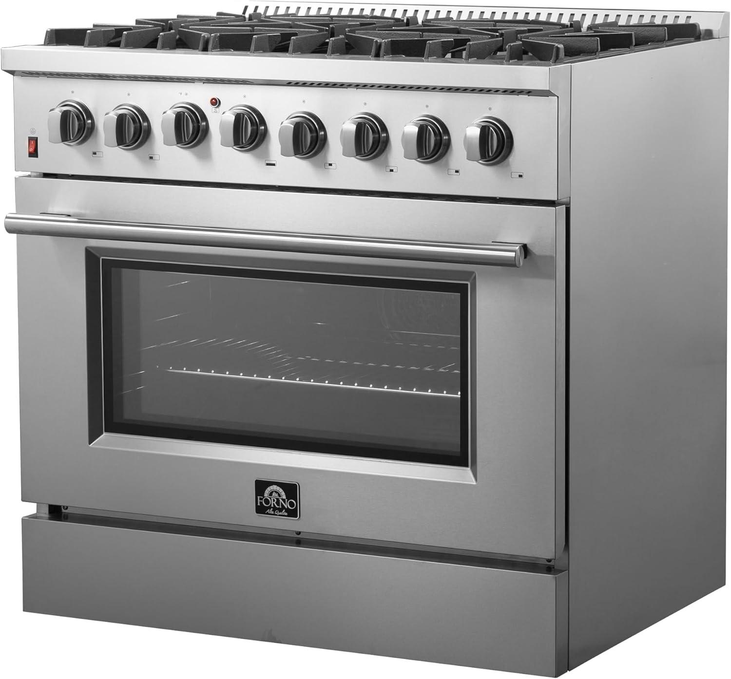 imageForno Premium 3Piece Kitchen Bundle  36Inch Marco Gas Range French Door Refrigerator ampamp Dishwasher in Stainless Steel  FBDL00901CAUS