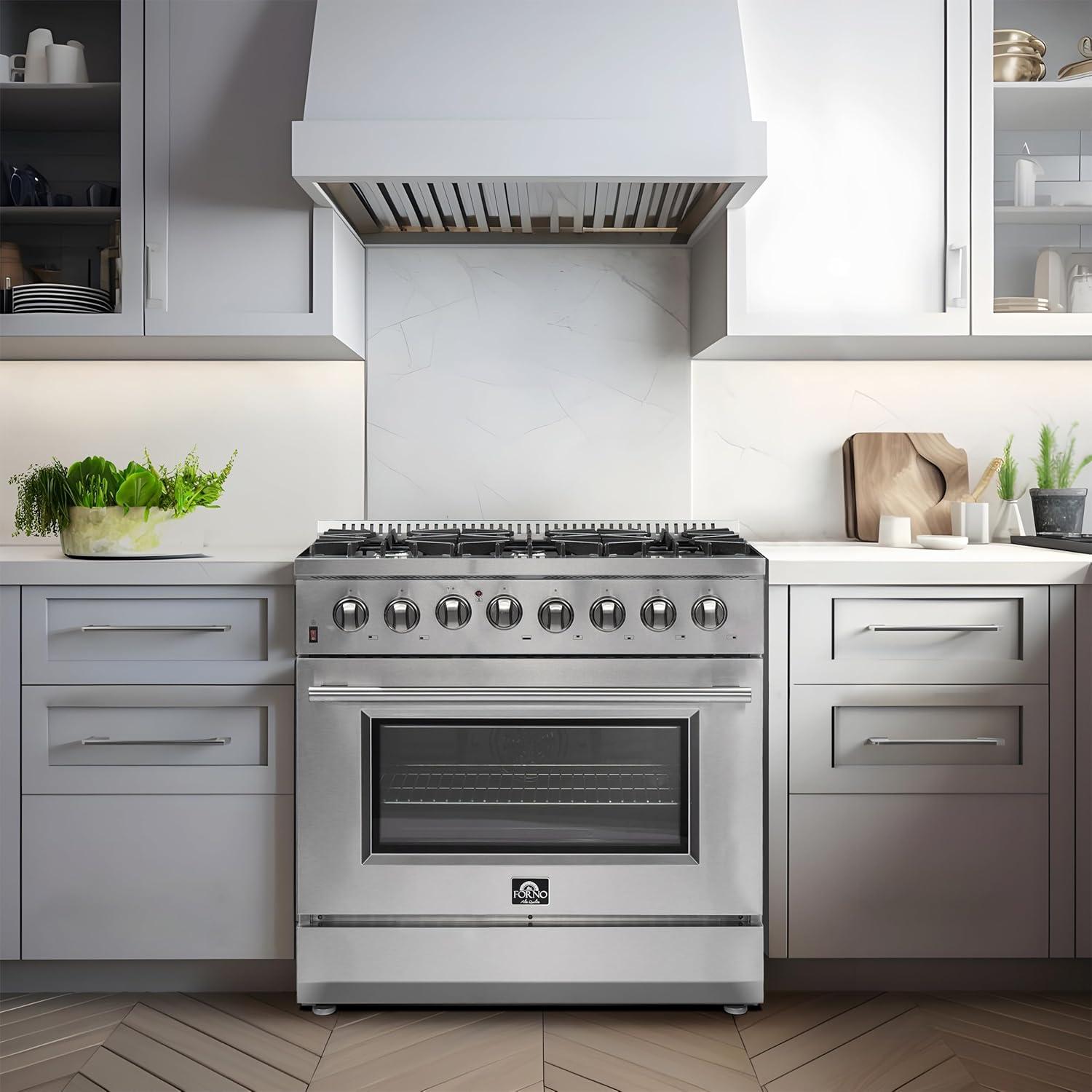 Forno Premium 3-Piece Kitchen Bundle – 36-Inch Marco Gas Range, French Door Refrigerator, & Dishwasher in Stainless Steel – FBDL-009-01CAUS