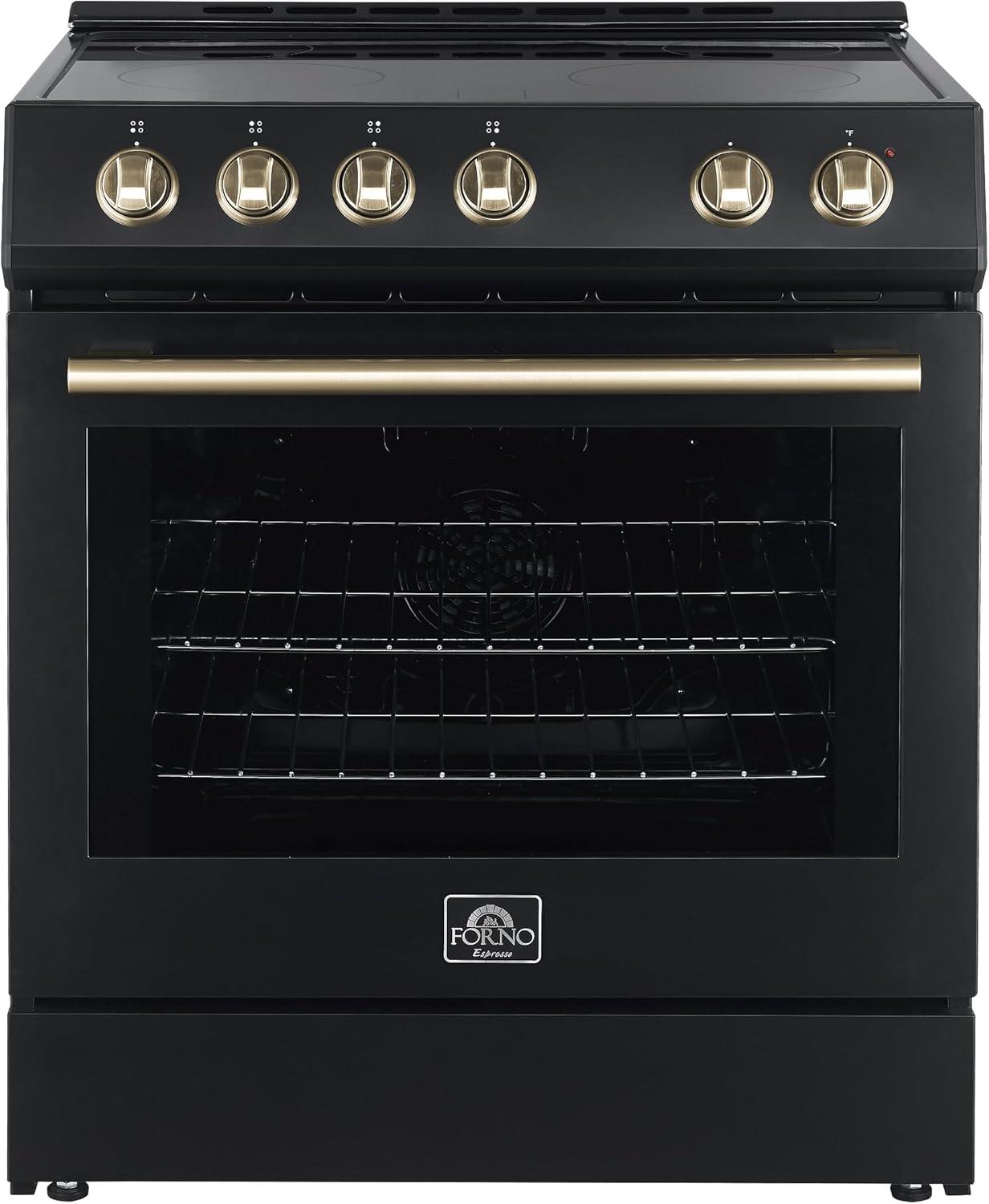 Upgrade your kitchen with the FORNO Premium 3-Piece Kitchen Bundle, a perfect blend of elegance, durability, and high performance. Designed to meet the demands of modern living, this set includes the Leonardo Espresso 30-inch Electric Range, 31-inch Bottom Freezer Refrigerator, and 24-inch Built-In Dishwasher — each featuring a sophisticated black finish that enhances any contemporary kitchen space. The Leonardo Espresso Electric Range (FFSEL6012-30BLK) delivers outstanding cooking precision with its 5.0 cu. ft. convection oven and ceramic glass cooktop for even heat distribution. Its 3,500-watt output ensures consistent baking, roasting, and broiling performance, while the antique brass handles add a refined touch to your kitchen aesthetic. The 31-inch Bottom Freezer Refrigerator (FFFFD1785-31BLK) offers 17.5 cu. ft. of total storage capacity, providing ample space for fresh and frozen items. Designed for both performance and efficiency, it operates with an energy-efficient cooling system, maintaining optimal temperatures while reducing consumption. Its stainless steel finish complements the black exterior, creating a timeless and coordinated look. Completing the bundle, the 24-inch Built-In Dishwasher (FDWBI8067-24BLK) ensures a quiet and efficient cleaning experience. Operating at just 45 dB, it features adjustable racks and a third rack for added flexibility when loading dishes, utensils, and cookware. The stainless steel interior enhances durability and promotes better drying performance. Together, these three appliances combine style and function — offering everything you need for a coordinated, high-performing kitchen upgrade. Refrigerator Product Dimensions: 23.6 x 31.1 x 69.09 inches; 196 Pounds Dishwasher Product Dimensions: ‎ 26.54 x 23.85 x 33.74 inches; 102 Pounds Electric Range Product Dimensions: ‎ 26.25 x 30 x 37.13; 145.5 Pounds