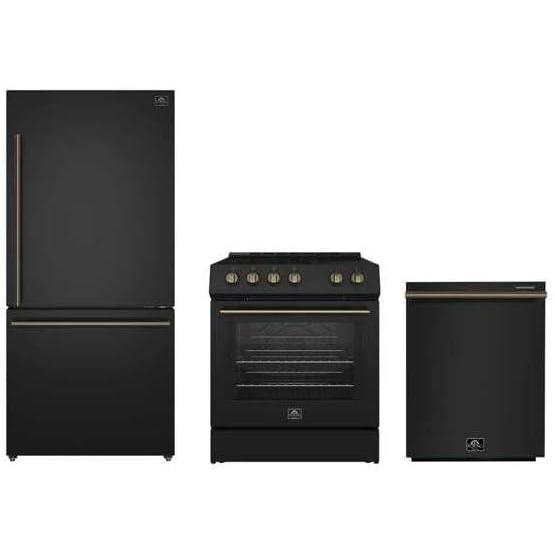 FORNO Premium 3-Piece Kitchen Bundle – Leonardo Espresso 30″ Range, 31″ Bottom Freezer Refrigerator & 24″ Built-In Dishwasher in Black – FBDL-007-02US