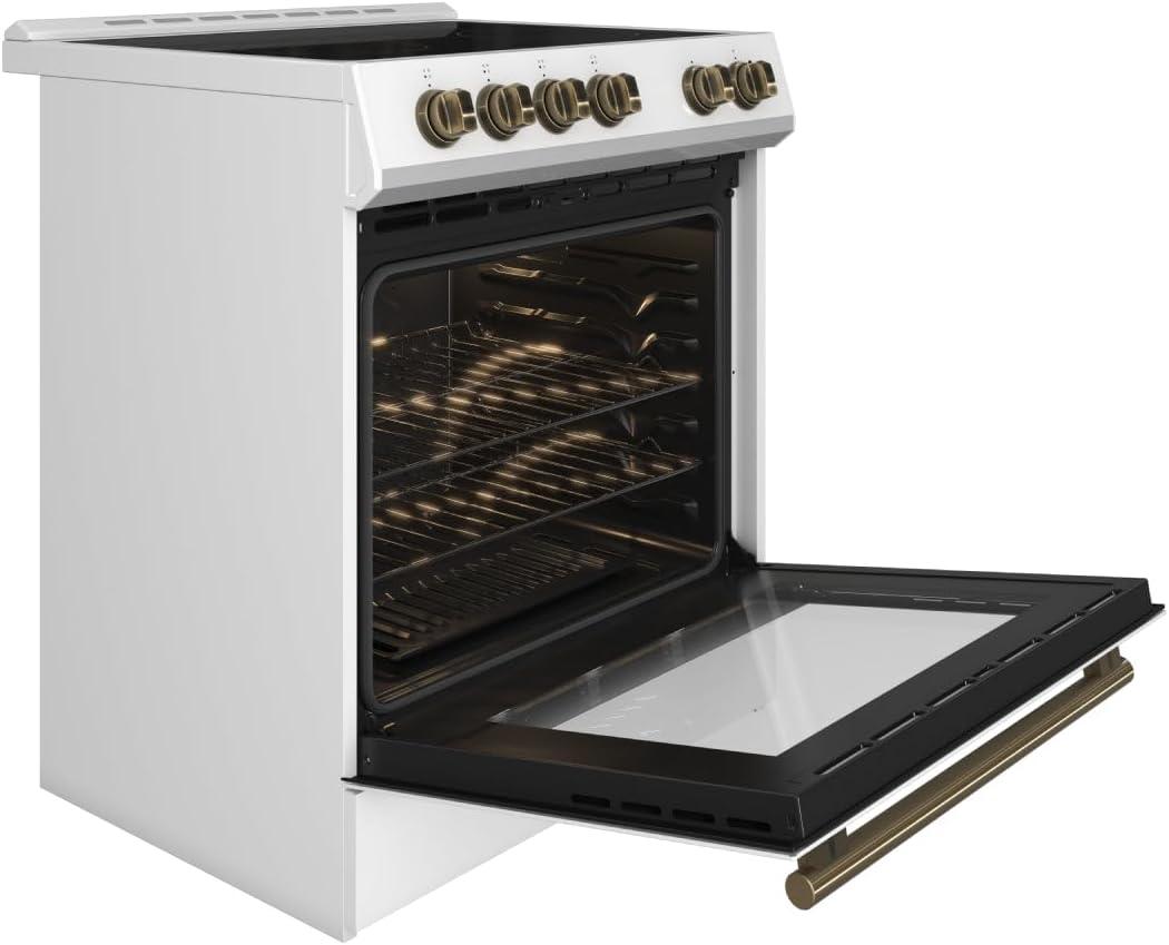 30″ Electric Range Features – The 5.0 cu. ft. convection oven with hidden bake element delivers even results with easy cleaning, while four radiant elements provide 7,100W of total cooking power. Ceramic glass cooktop, two oven racks, and friction-resistant hinges ensure efficiency, durability, and convenience.
