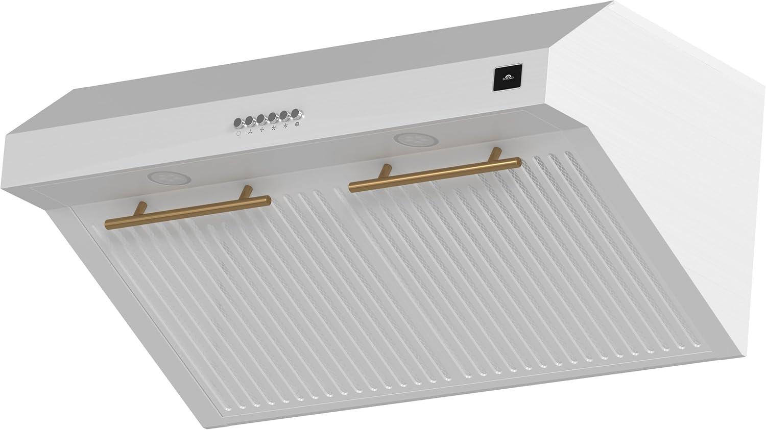 30″ Range Hood Performance – Commercial inclined design with a powerful 400 CFM 4-speed AC motor captures grease and odors effectively. Hybrid filters extend lifespan with low maintenance, while LED surface lights and quiet 55–66dB operation ensure clear visibility and a cleaner cooking environment.
