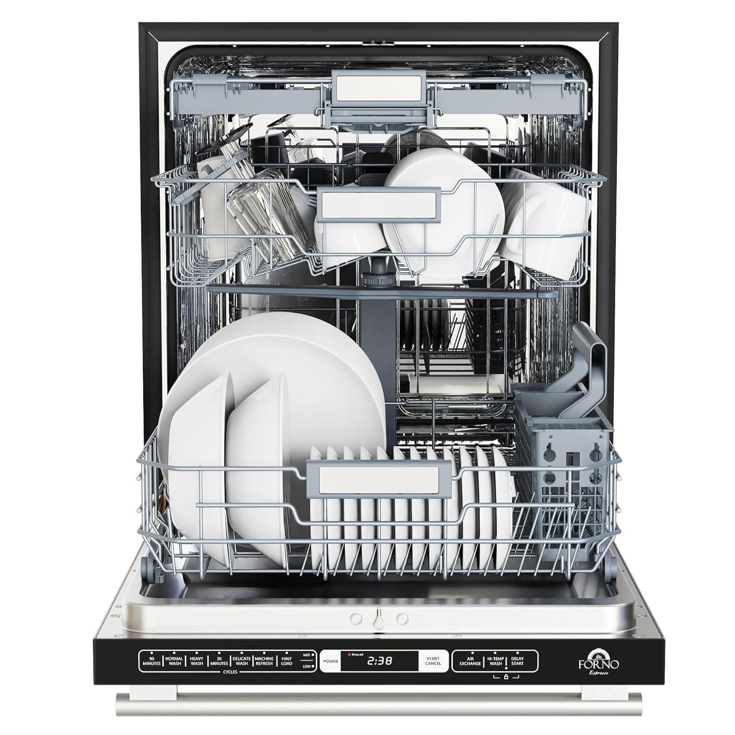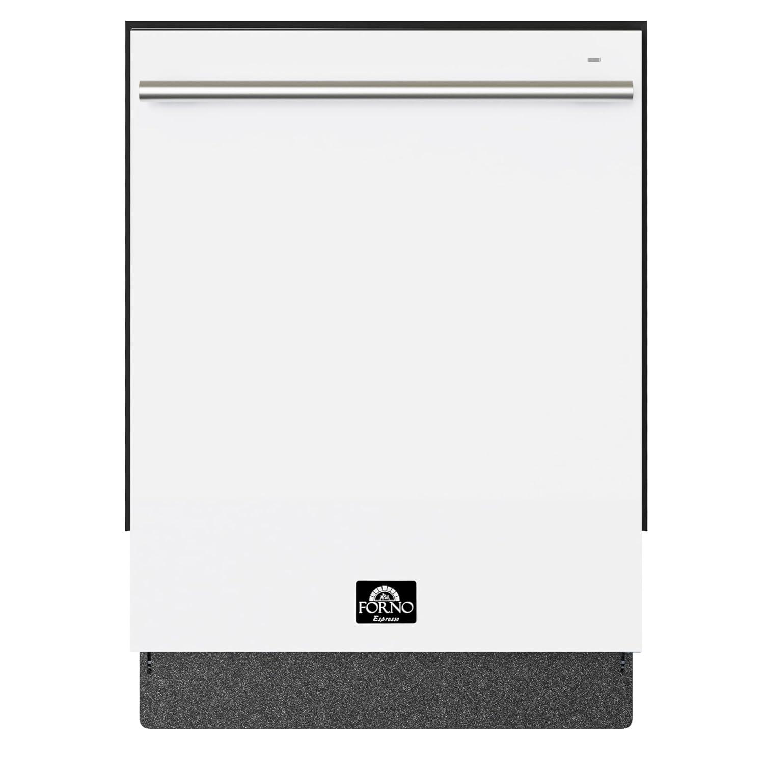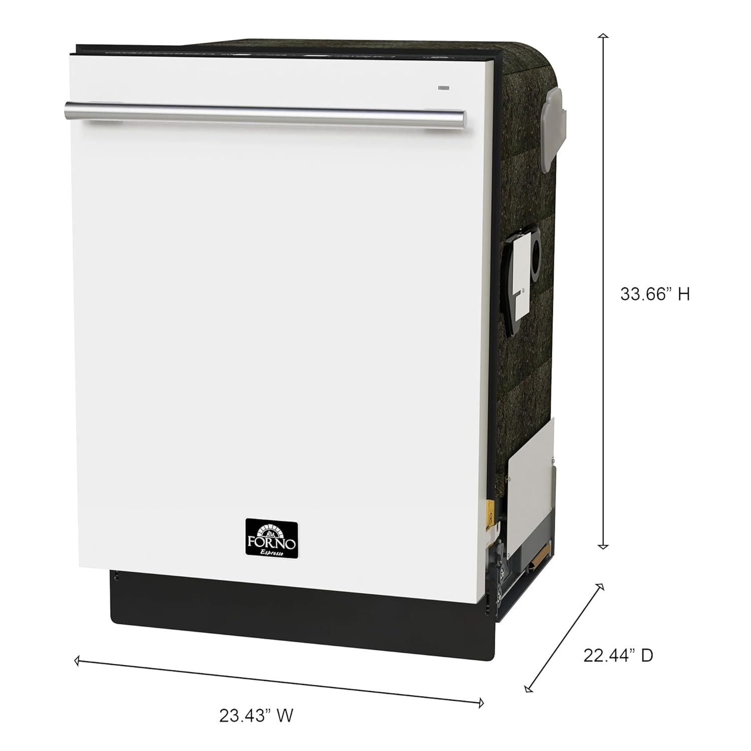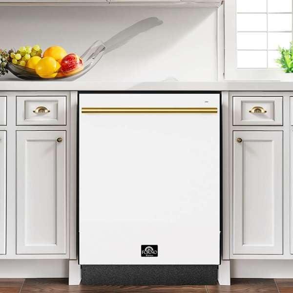 Forno Romano 24-Inch Built-In Dishwasher with Antique Brass Handle, Quiet 49 dBA Operation, Stainless Steel Tub, 14 Place Settings, Efficient Design – White