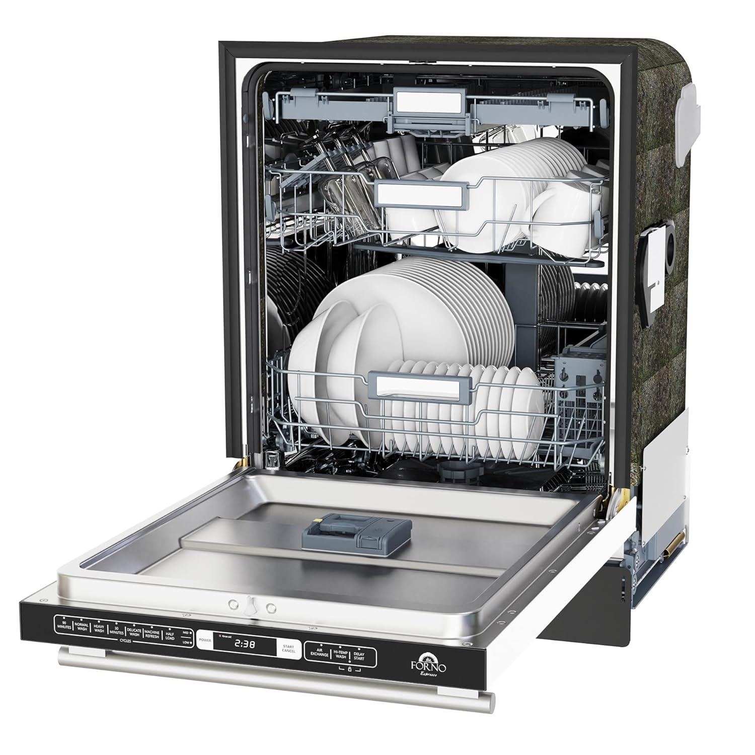 Forno Romano 24-Inch Built-In Dishwasher with Antique Brass Handle, Quiet 49 dBA Operation, Stainless Steel Tub, 14 Place Settings, Efficient Design - White