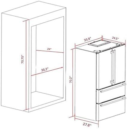 Forno Salerno 37-inch French Door Refrigerator – 15.6 Cu.Ft. Stainless Steel with LED Touch Control, w/Trim, Fast Cool, Fast Freeze & Spill-Proof Shelves
