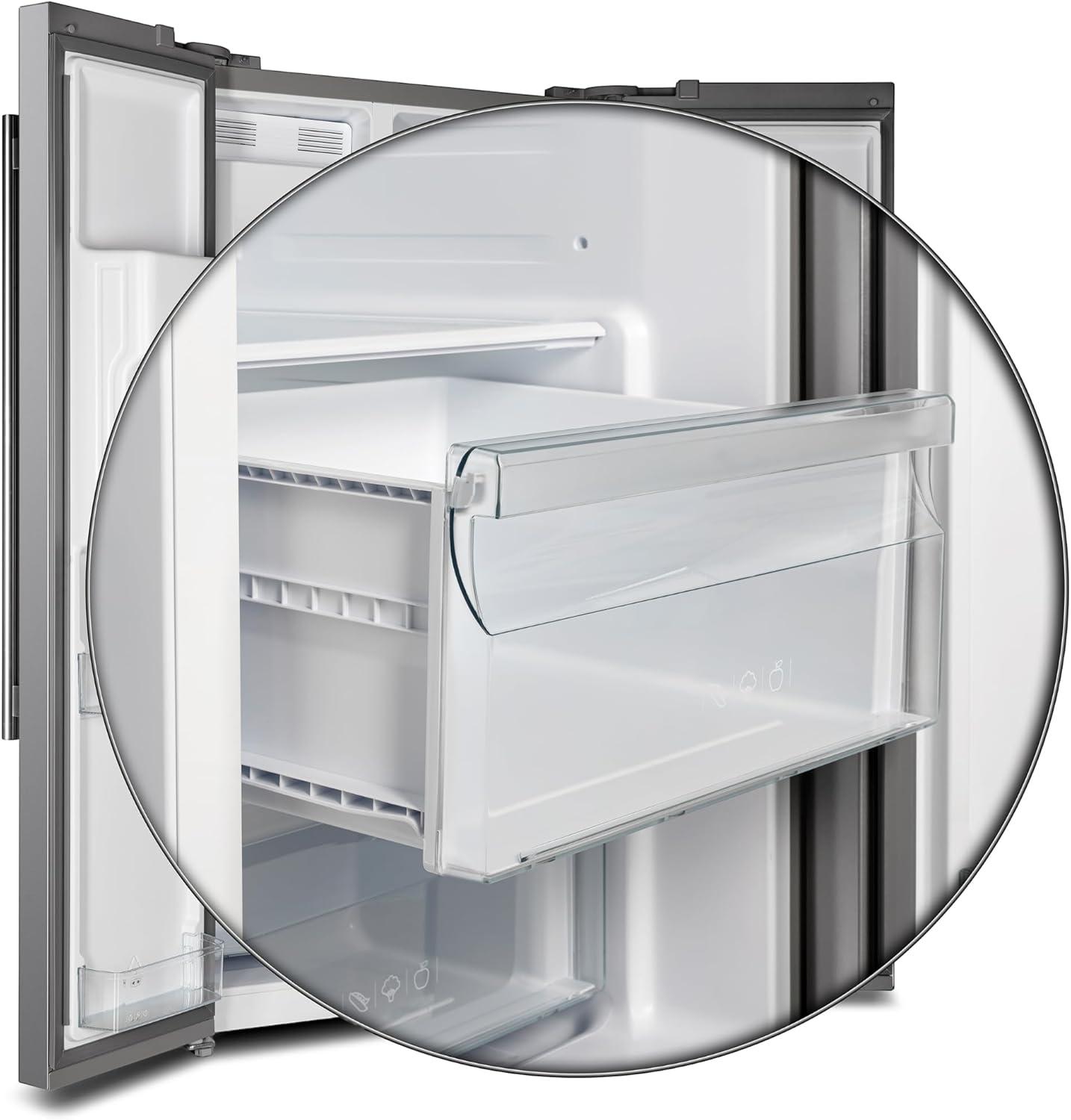 𝐅𝐄𝐀𝐓𝐔𝐑𝐄𝐒: Rest assured that this unit will keep your food at perfect temperatures with its Intelligence chip temperature control feature and digital control. This refrigerator has a child lock mode, vacation mode, and Sabbath model. Controlling type, electronic touch control on the door side, interior LED lighting. It also, has a Dark Grey side Cabinet, White plastic air duct cover, and White glass shelves trim