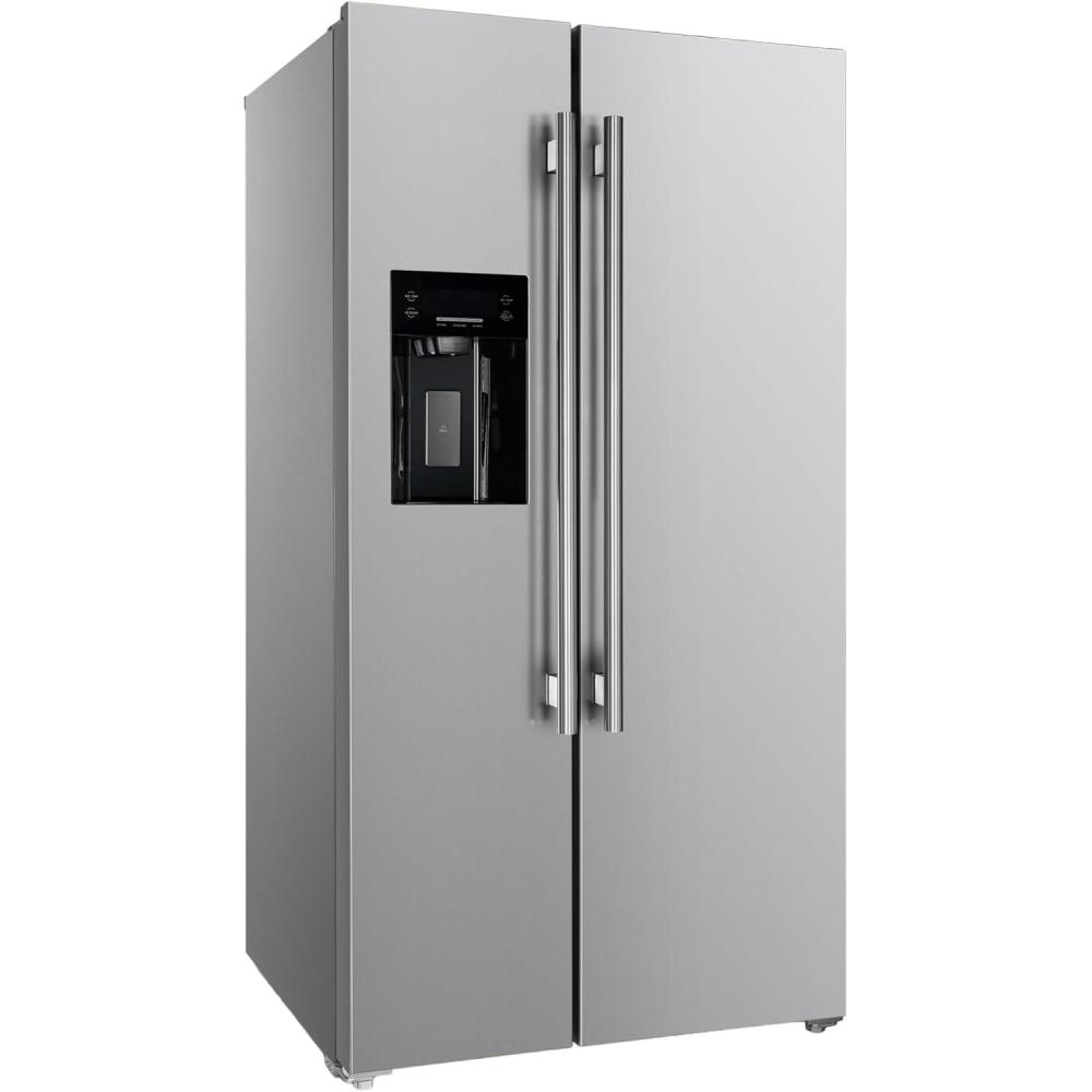 𝐒𝐄𝐓 𝐈𝐍𝐂𝐋𝐔𝐃𝐄𝐒: 36″ Side by Side Refrigerator 20.0cuft, with Ice Maker. Total Frost-Free Design, Interior LED Lighting, Electronic touch control on the door side, Stainless Steel Door Panel, 3 Glass Adjustable Shelves, 2 Freezer Drawers Design Stainless Steel Door Panel, Dark Grey Side Cabinet, N/ST Climate Class, E-star Energy rating, Sabbath mode. Both solid ice and crushed ice with an ice maker.