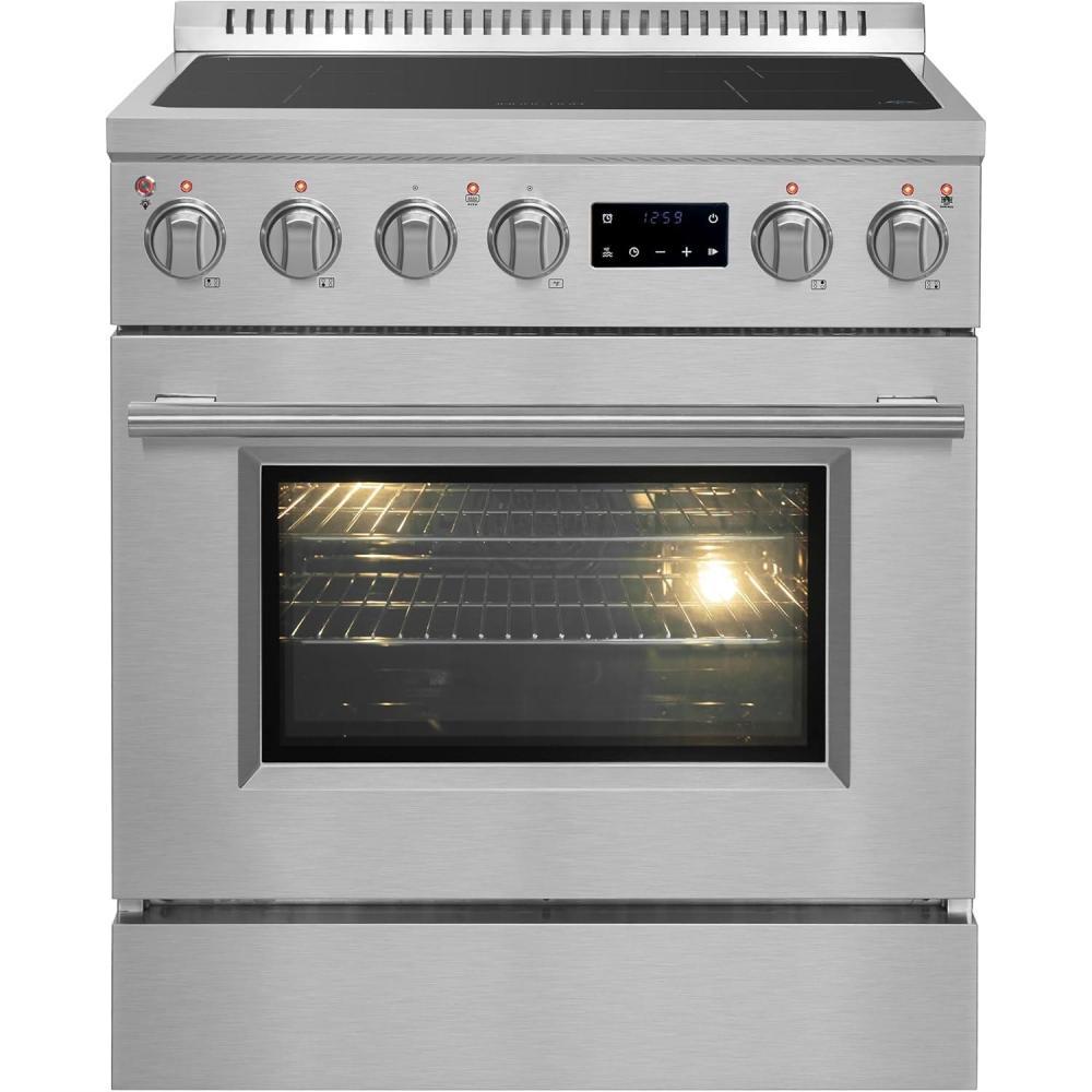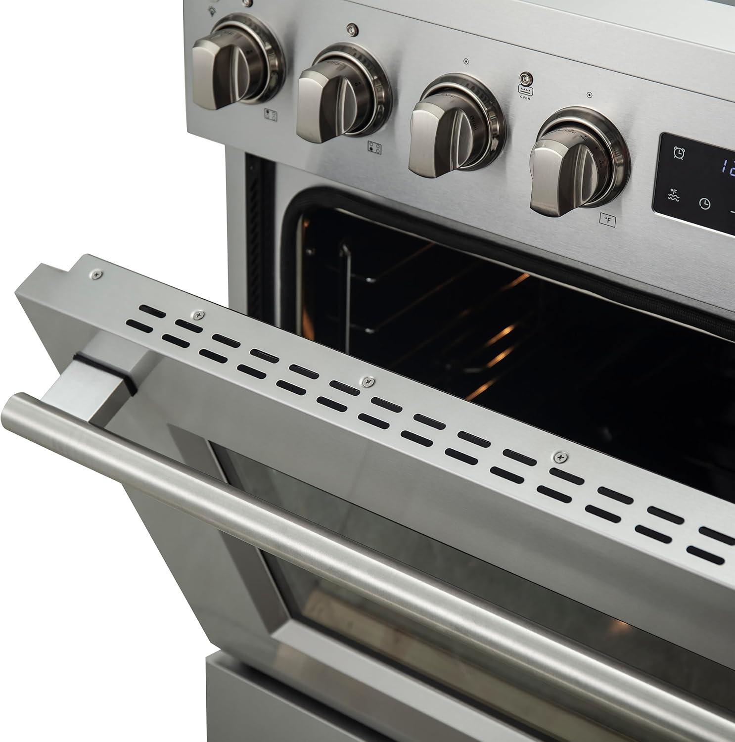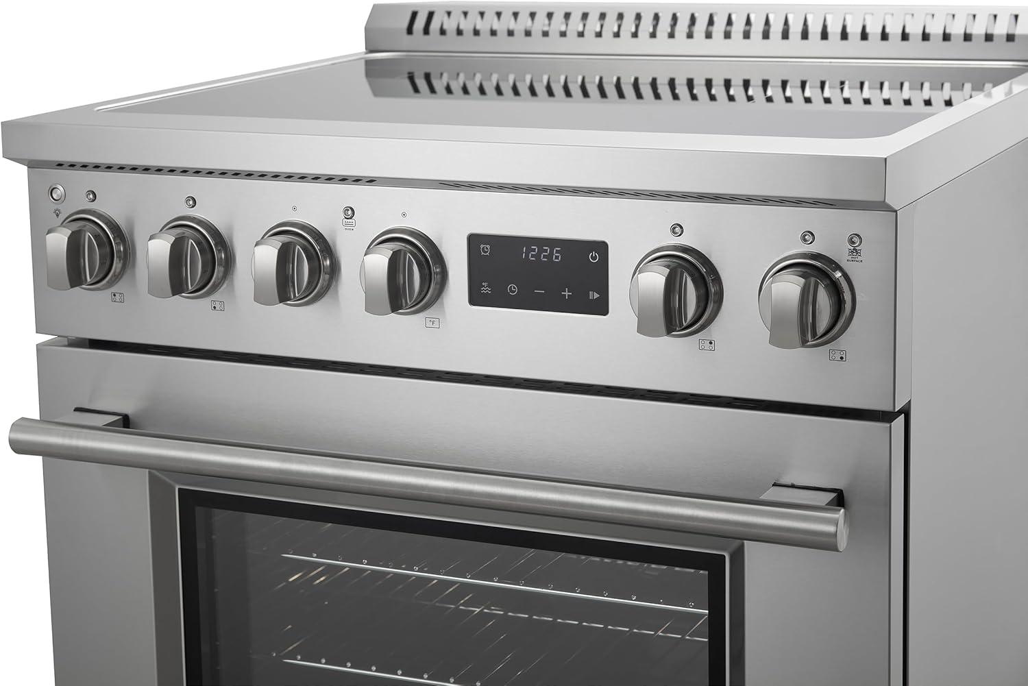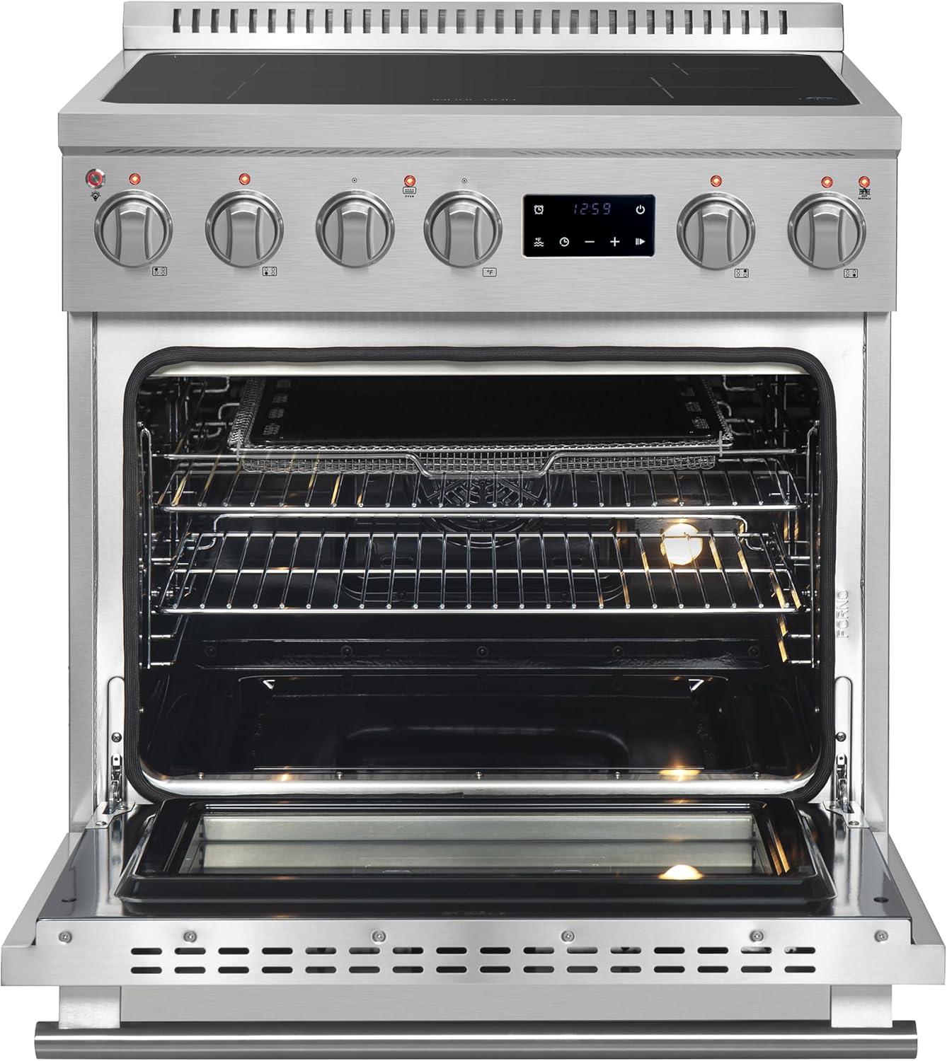 Powerful 8,800W Induction Cooktop: The Forno Torino 30-inch induction range features an 8,800W cooktop that delivers quick and efficient heat, ensuring precision and fast cooking. With four burners, it's ideal for everyday cooking, offering superior heat control for all your culinary needs.