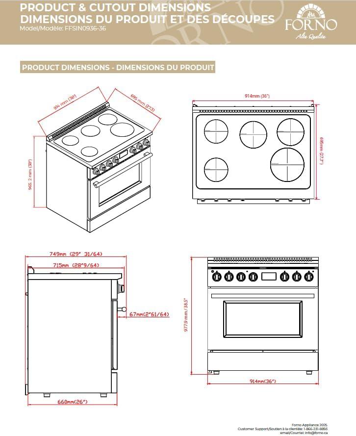 High-Performance 36-Inch Induction Range: Equipped with a powerful 10,900W induction cooktop, the Forno Torino range ensures fast, efficient heat with precise temperature control for everyday cooking. Perfect for both small tasks and large meals, it brings professional-grade performance to your kitchen.