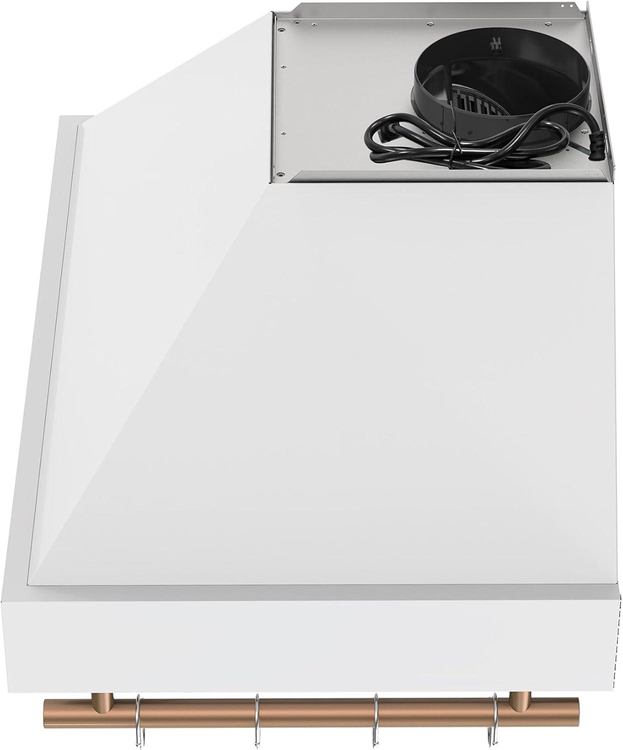 FORNO Venezia 30" Wall Mount Ducted Range Hood, 370 CFM – White with Antique Brass Accents – Touch Controls, LED Lights, Dishwasher-Safe Stainless Steel Filters, Quiet Operation – FRHWM5503-30WHT