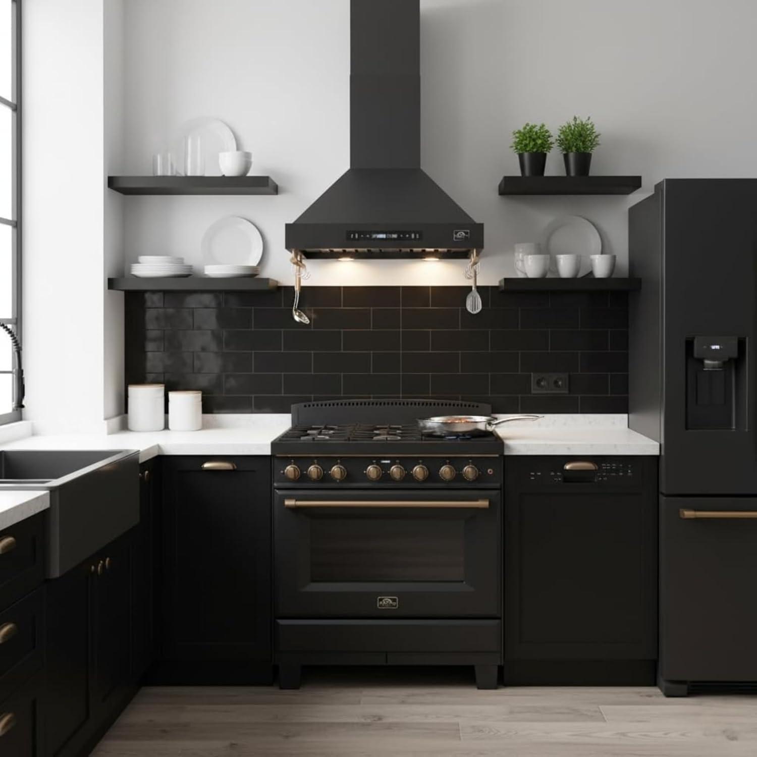 Be the first to review “FORNO Venezia 30″ Wall Mount Range Hood, 370 CFM Ducted Ventilation – Stainless Steel – Touch Controls – LED Lights – Adjustable Fan Speeds – Black with Antique Brass Accents – FRHWM5503-30BLK”