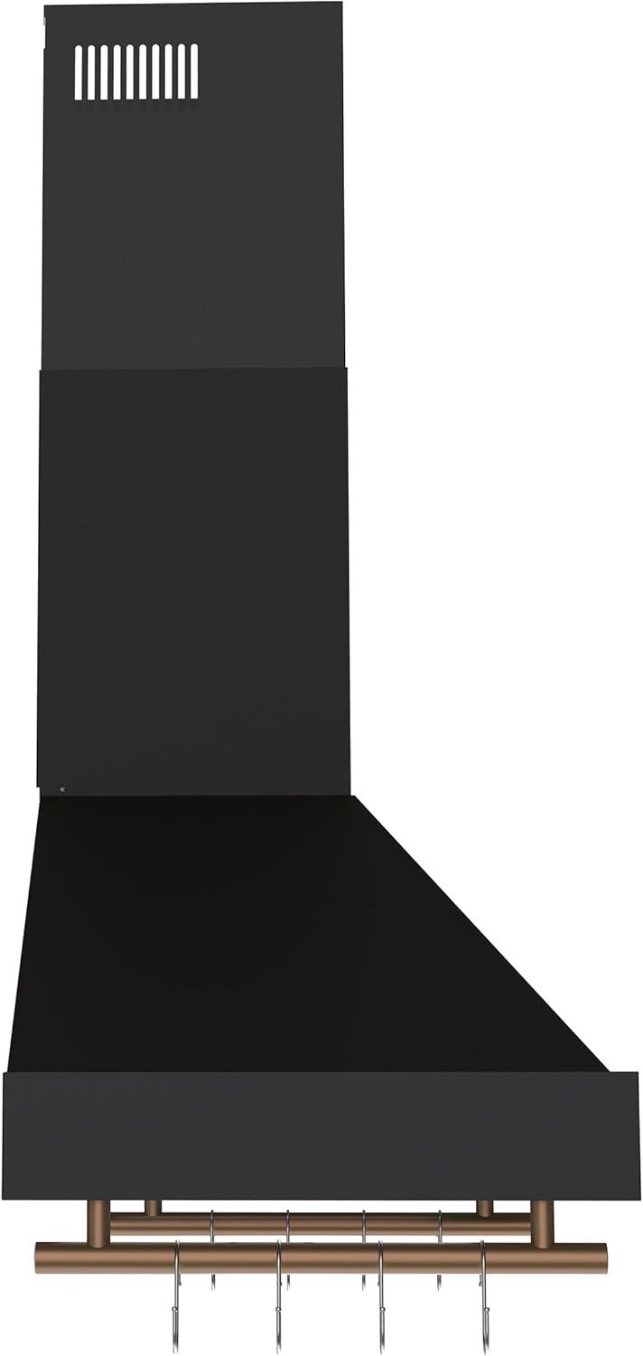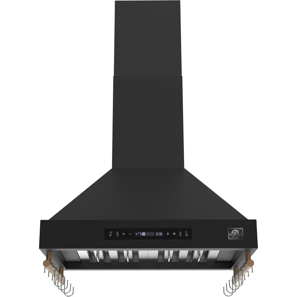 FORNO Venezia 30" Wall Mount Range Hood, 370 CFM Ducted Ventilation – Stainless Steel – Touch Controls – LED Lights – Adjustable Fan Speeds – Black with Antique Brass Accents – FRHWM5503-30BLK