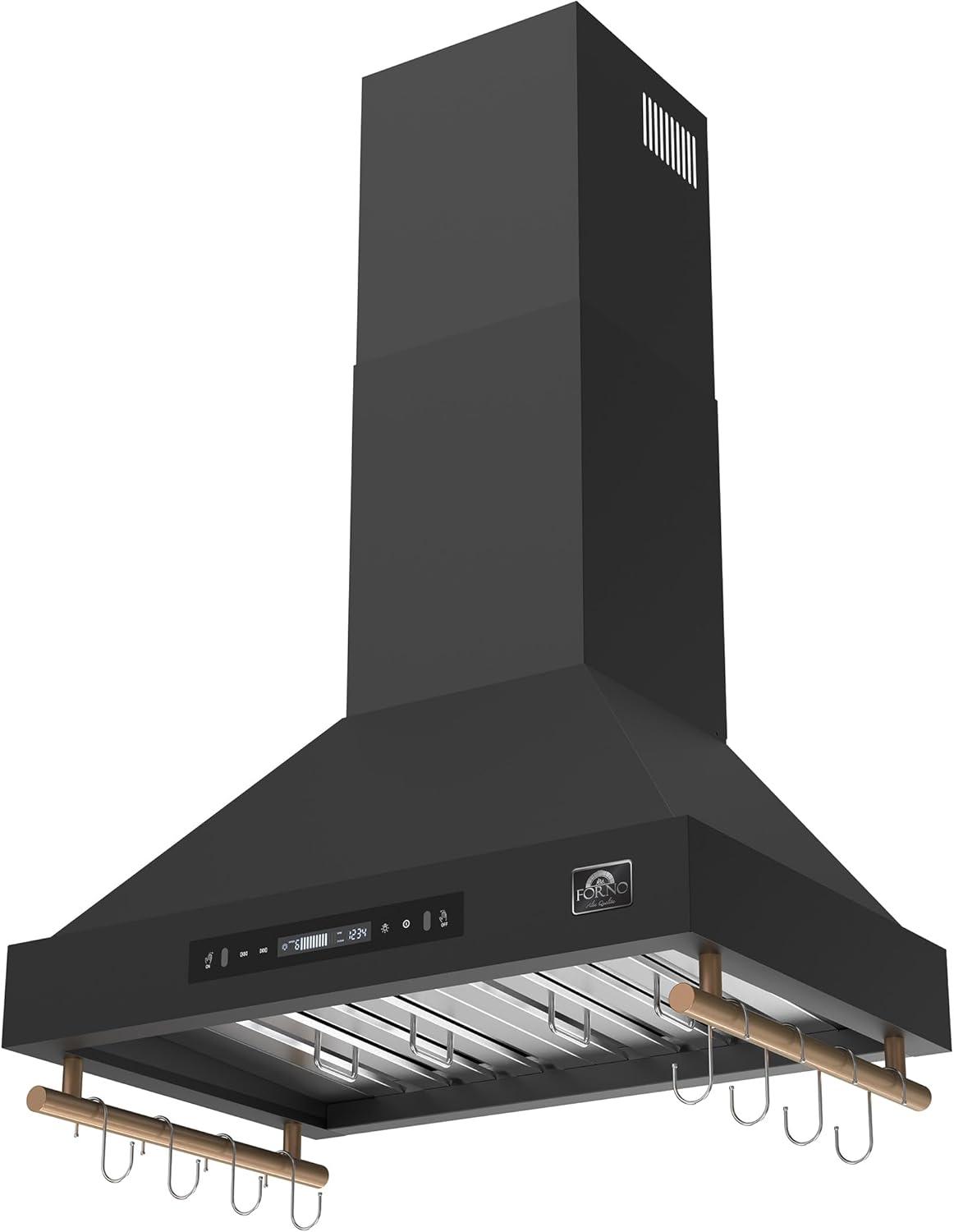 imageForno Coppito 36quot Inch Island Range Hood with 1200 CFM Double Motor and 4 Speed Touch Control  Stainless Steel Ceiling Mount Kitchen Stove Vent with Baffle Filter and 2 Chimney Extensions
