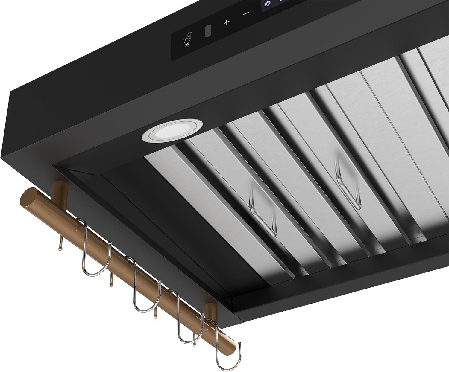 FORNO Venezia 30″ Wall Mount Range Hood, 370 CFM Ducted Ventilation – Stainless Steel – Touch Controls – LED Lights – Adjustable Fan Speeds – Black with Antique Brass Accents – FRHWM5503-30BLK