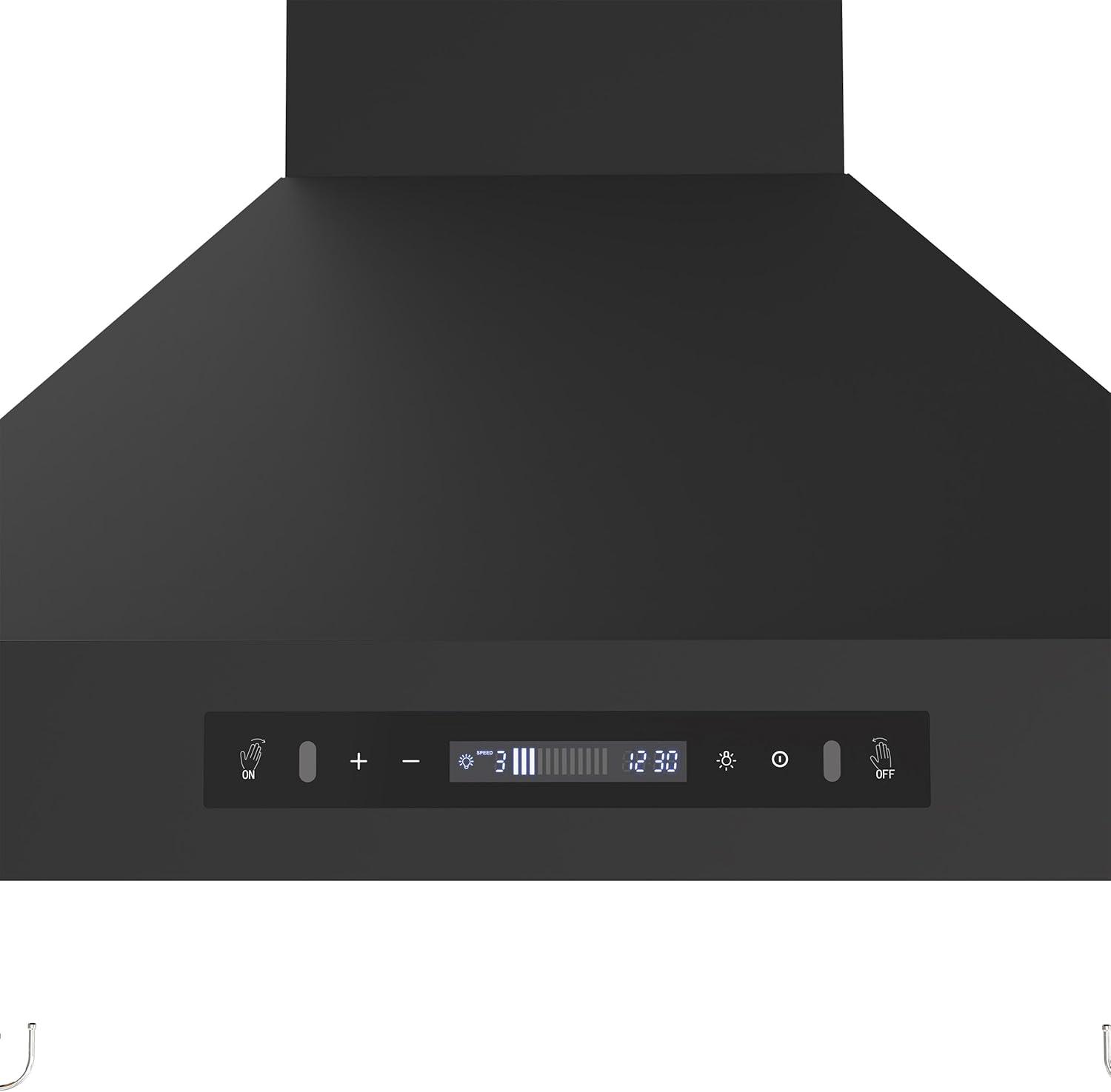 Forno Venezia 30 Inch Wall-Mounted Range Hood FRHWM5503-30BLK in Black with Touch Controls and Baffle Filters delivers professional-grade ventilation, modern design, and effortless convenience for every kitchen. Engineered to remove smoke, steam, and cooking odors efficiently, this range hood keeps your space fresh, clean, and visually stunning. Equipped with a 3-speed ventilation fan, it easily adapts from gentle simmering to high-heat cooking, giving you precise control over airflow. The automatic shut-off with delay timer ensures lingering odors and smoke are removed even after you finish cooking, while quiet operation minimizes noise for a peaceful kitchen environment. Its sleek black stainless steel finish brings bold, contemporary style to any kitchen, complementing modern appliances and décor. The adjustable chimney height allows seamless installation in a variety of ceiling layouts, making it perfect for both standard and custom kitchens. Cleaning is simple with dishwasher-safe baffle filters, which capture grease efficiently and maintain long-lasting performance. Thoughtful side hooks for utensils keep spatulas, ladles, tongs, or towels within easy reach, helping you stay organized while cooking. Energy-efficient LED lighting brightens your cooktop evenly, while the touch control panel makes adjusting fan speed and lighting simple and intuitive. Ideal for home chefs and entertaining, the Forno Venezia combines high-performance ventilation, low-maintenance design, and professional style. From everyday meals to elaborate feasts, this range hood elevates your kitchen experience, enhancing comfort, efficiency, and elegance while keeping your cooking space clean, stylish, and inviting.