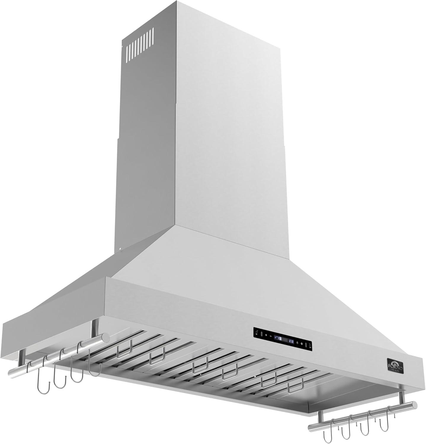 FORNO Venezia 48" 900 CFM Wall Mount Ducted Range Hood with Touch Controls, 3-Speed Fan, Delay Shut-Off, LED Lights, Dishwasher-Safe Baffle Filters, Adjustable Chimney, Stainless Steel – FRHWM5503-48