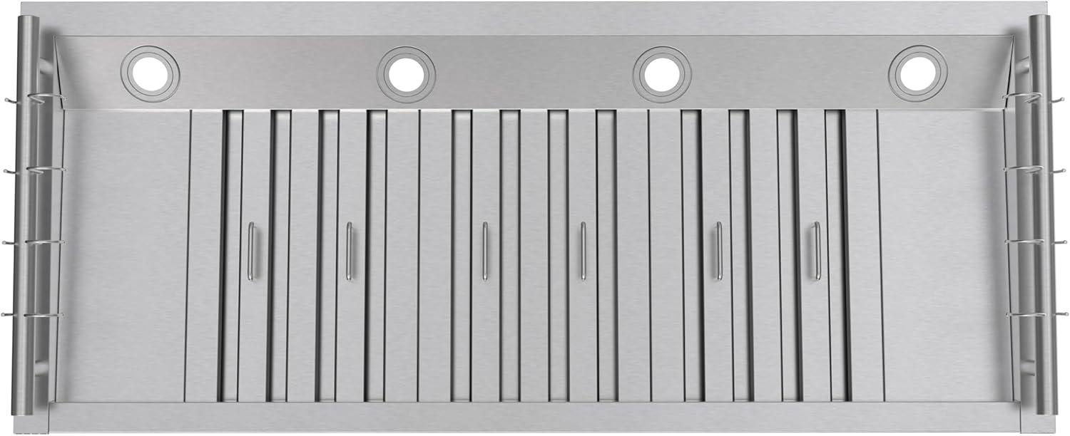 Dishwasher-Safe Baffle Filters – Equipped with three durable stainless steel baffle filters that capture grease and particulates while allowing high airflow. Filters are removable and dishwasher-safe, simplifying maintenance and ensuring sustained performance while keeping the range hood hygienic and easy to clean.