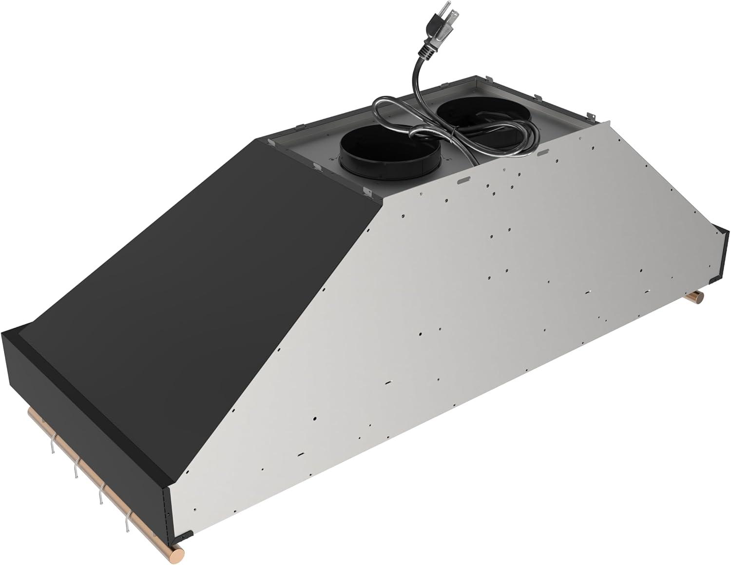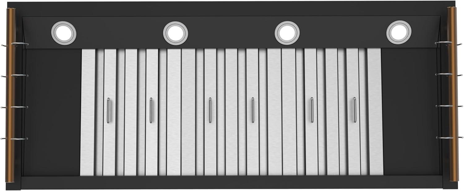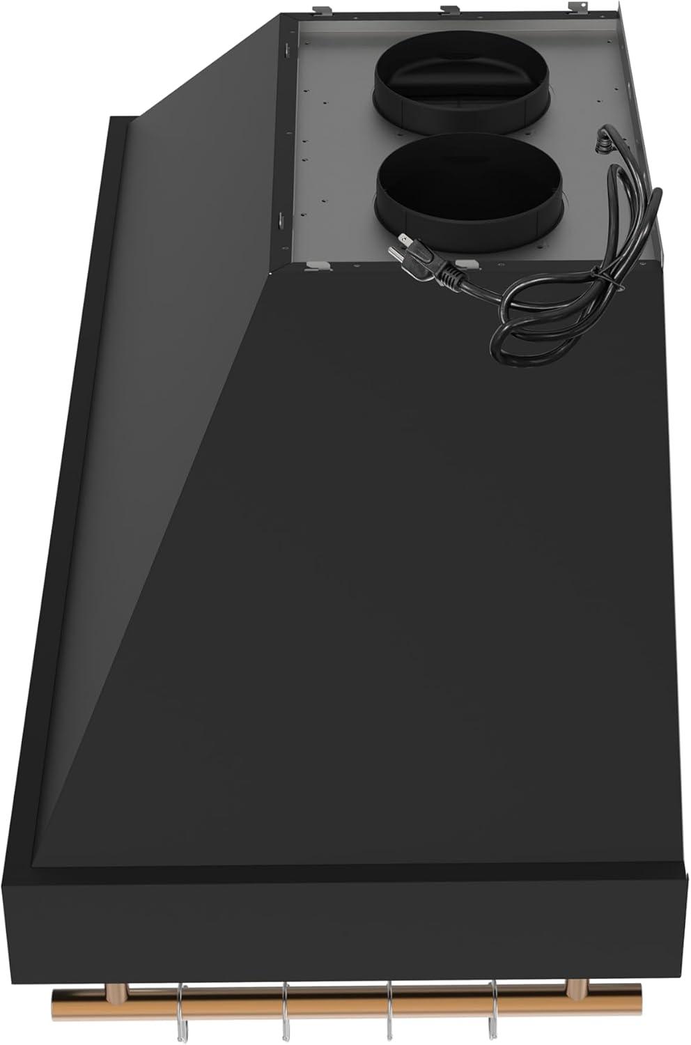 Elevate your kitchen with the FORNO Venezia 48″ 900 CFM Wall Mount Ducted Range Hood in Black with Antique Brass Accents, FRHWM5503-48BLK. This striking range hood blends powerful performance with modern design, making it the perfect centerpiece for any culinary space. Three-speed fans provide precise airflow control, whether you’re simmering, sautéing, or searing, while the delay shut-off timer ensures lingering smoke and odors are efficiently cleared. The sleek touch control panel delivers effortless operation, adjusting fan speeds and LED lights with a simple swipe. Energy-efficient LED illumination brightens your cooktop, pairing function with style, while dishwasher-safe stainless steel baffle filters make maintenance effortless. The adjustable-height telescoping chimney accommodates ceilings of varying heights, offering a seamless, custom installation. Designed with convenience in mind, the FORNO Venezia includes side hooks for lightweight utensils, keeping spatulas, ladles, and tongs within easy reach. Its quiet operation, even at high speeds, ensures a comfortable kitchen environment. Bold black finishes accented with antique brass trim provide a sophisticated, contemporary look that complements a wide range of kitchen décor. Compatible with a complete FORNO kitchen suite, pair the Venezia with the FORNO Marco 36″ Gas Range, FFSGS6277-36BLK, the FORNO Espresso Moena 36″ Refrigerator with Ice Maker, FFRBI1820-36BLK, and the FORNO Espresso Pozzo 24″ Built-In Dishwasher, FDWBI8067-24BLK, for a fully coordinated, high-performance setup. Certified ETL Listed and backed by a 2-year parts and labor warranty, the FRHWM5503-48BLK ensures lasting reliability and style for your home.