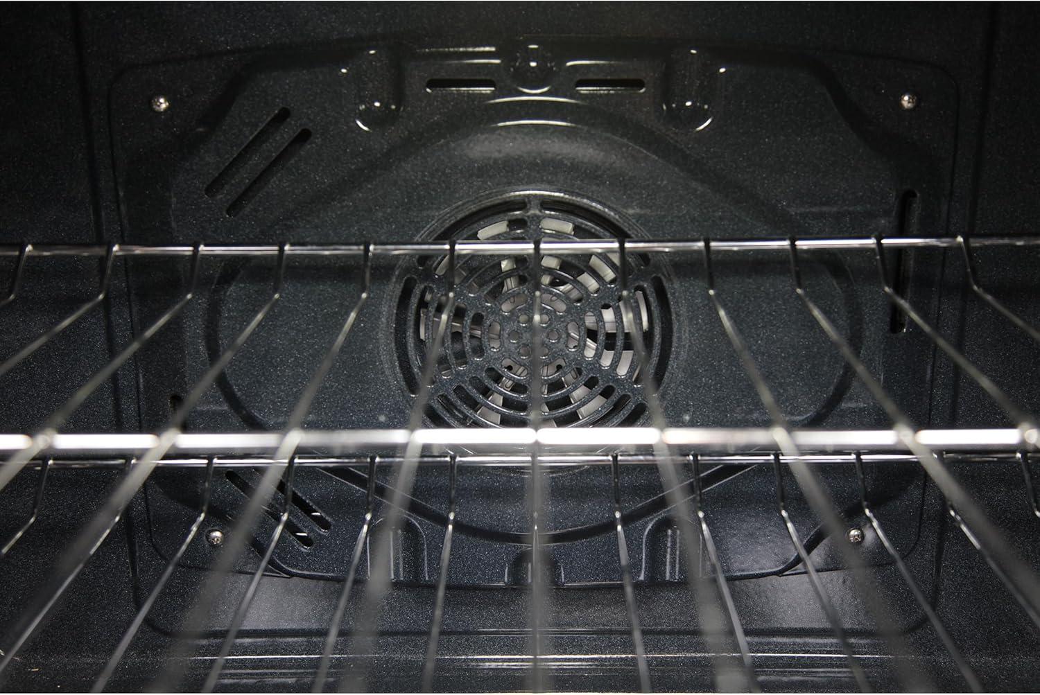 𝐎𝐕𝐄𝐍: Total Net Capacity 5.00 cubic feet, Oven power: 4,800W. This oven has 2 electroplate steel racks, Touch Glass Controls, and a Large LCD Display that is Easy to See, Operate, and Clean, 2 Halogen Oven Lights, Convection Fan, Gray Enamel Oven Interior