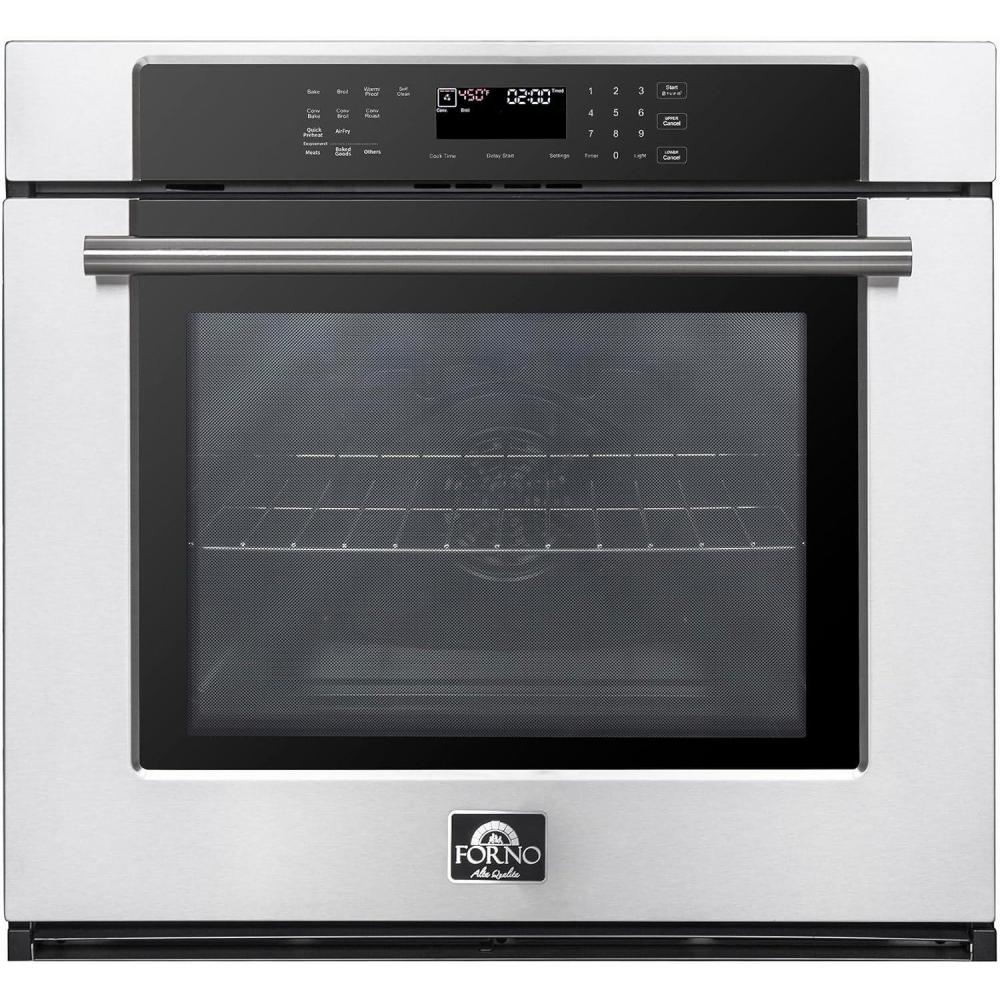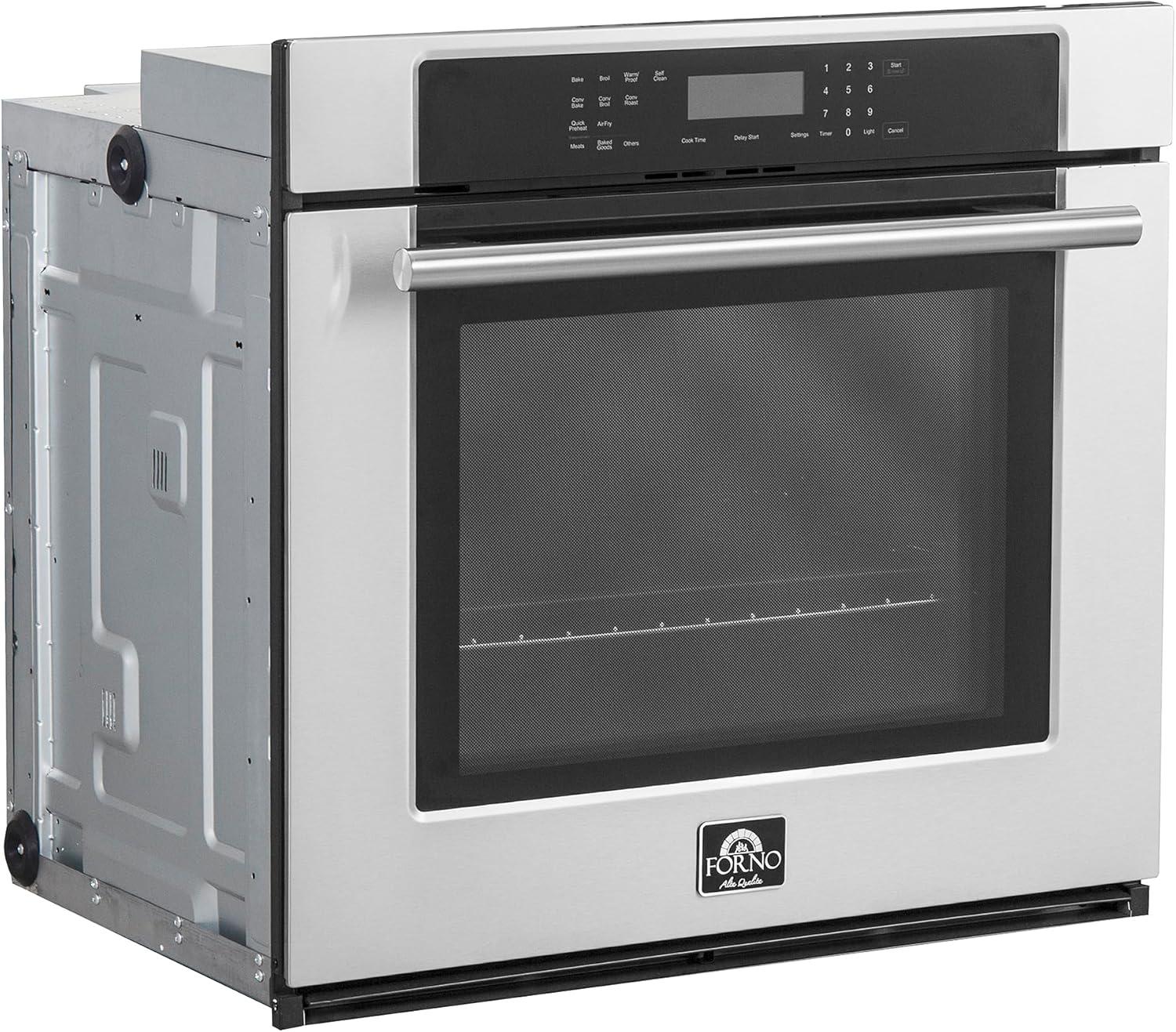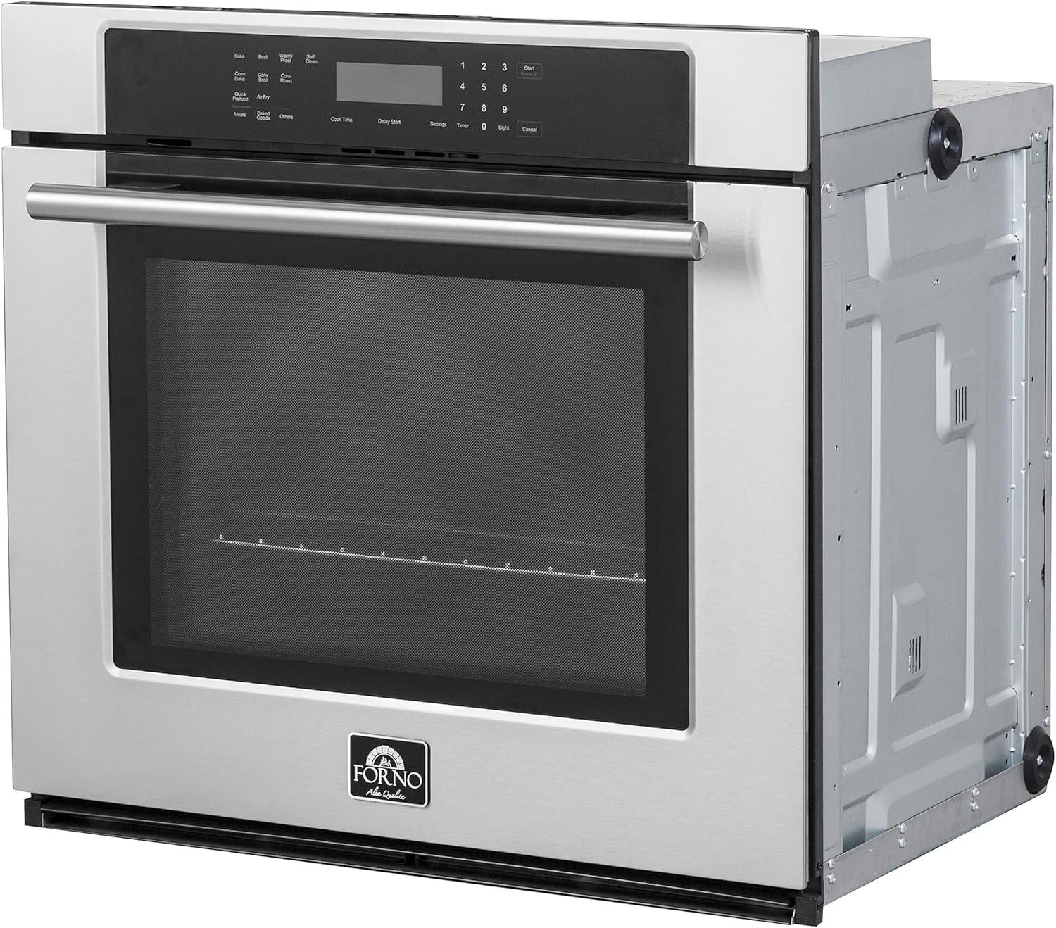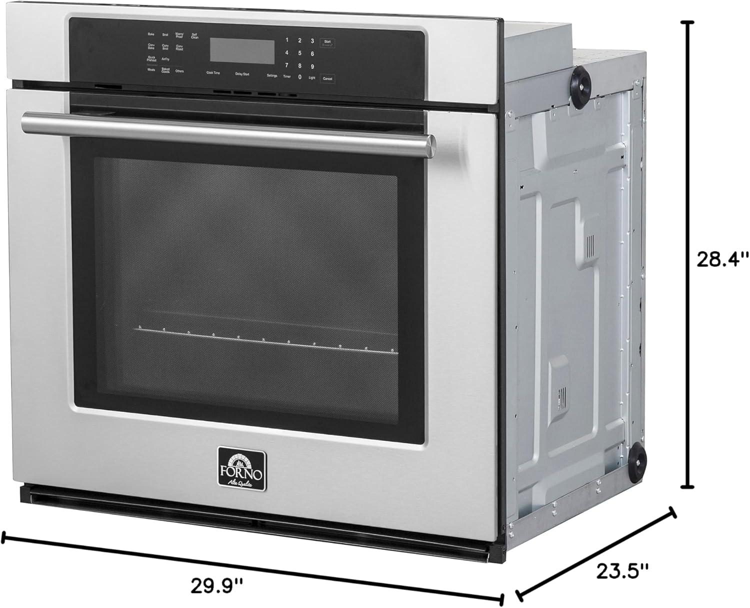 FORNO Villarosa Electric 30" Inch. Built-In Single Wall Oven Glass Touch Controls, Auto Cooking and Steam Cleaning - 5.00 Cubic ft. Stainless Steel Convection Wall Oven with Air-Fry Function