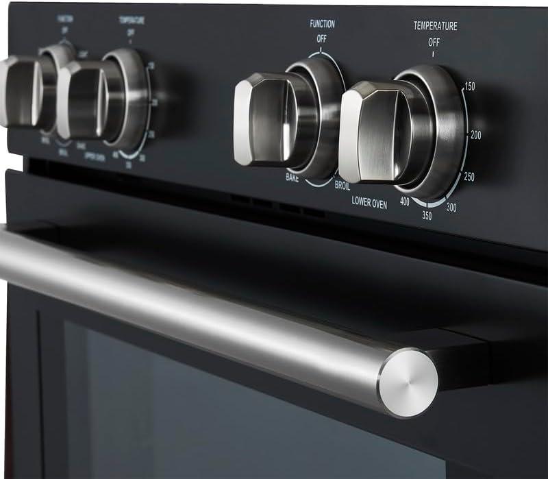 Upgrade your kitchen with the Forno Vomero 30-Inch Double Electric Wall Oven in Black, a sleek and reliable appliance designed to handle everything from everyday family meals to large holiday feasts. With a generous 10 cu. ft. total capacity, this oven allows you to cook multiple dishes at once—ideal for big families, home chefs, and entertainers. Upper Convection Oven – Enjoy 6 versatile cooking functions: Bake, Convection Bake, Broil, Convection Broil, Convection Roast, and Defrost. Powered by a 2000W broiler, 1500W bake element, and 50W convection fan, it ensures faster preheating, even cooking, and energy efficiency. Lower Traditional Oven – Equipped with a 2000W broiler and 1500W bake element, this oven is perfect for classic roasting and baking, giving you reliable results without convection. With its modern black finish, spacious capacity, and powerful heating performance, the Forno Vomero Double Wall Oven combines professional results with everyday convenience. ✔️ Durable & Reliable – Backed by a 2-year warranty covering parts and labor for peace of mind. ✔️ Large Capacity Cooking – Perfect for preparing multiple dishes at once. ✔️ Versatile Design – A great choice for remodels, new kitchens, or anyone upgrading to a professional-quality wall oven. Product Specifications: Total Capacity: 10 cu. ft. Weight: 204.47 lbs Dimensions (W x D x H): 29.78″ x 26.7″ x 51.17″ Bring home the Forno Vomero 30-Inch Double Wall Oven and experience the perfect balance of style, performance, and reliability for your modern kitchen.