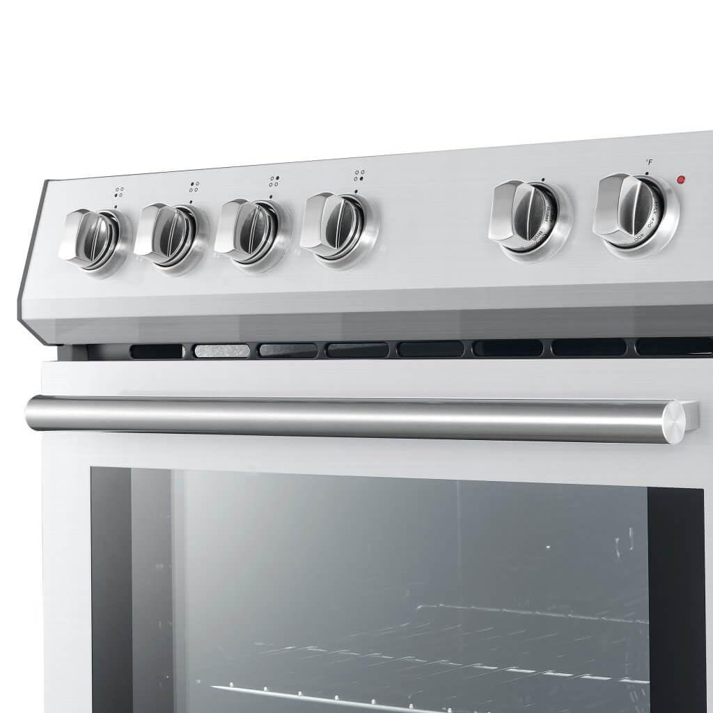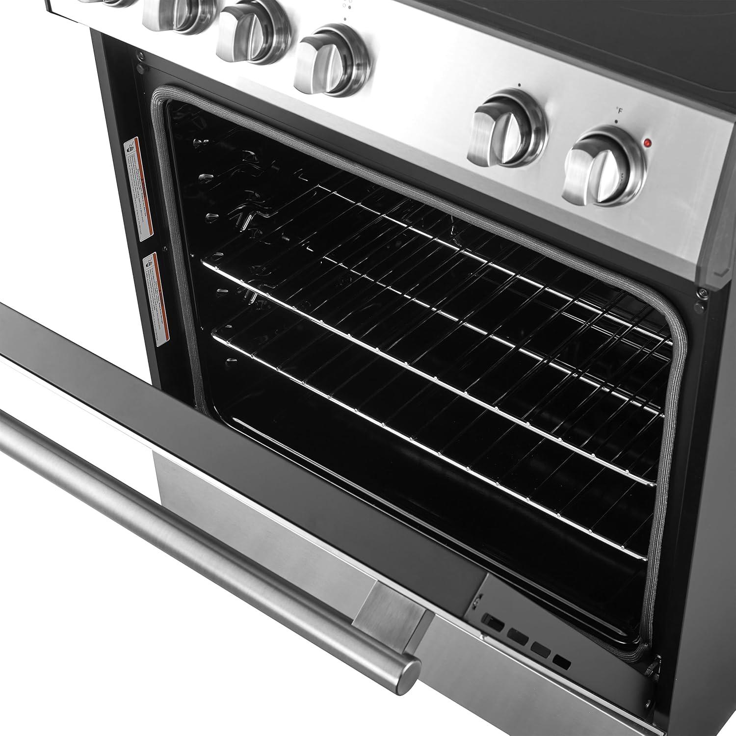 𝐃𝐔𝐑𝐀𝐁𝐋𝐄 𝐀𝐍𝐃 𝐄𝐅𝐅𝐎𝐑𝐓𝐋𝐄𝐒𝐒 𝐂𝐋𝐄𝐀𝐍𝐈𝐍𝐆: The smooth ceramic glass cooktop provides a sleek aesthetic and is easy to clean with a quick wipe-down. Our stainless steel finish adds longevity and style to your kitchen, resisting heat and stains for a hygienic space.So you can spend less time scrubbing and more time enjoying delicious meals.
